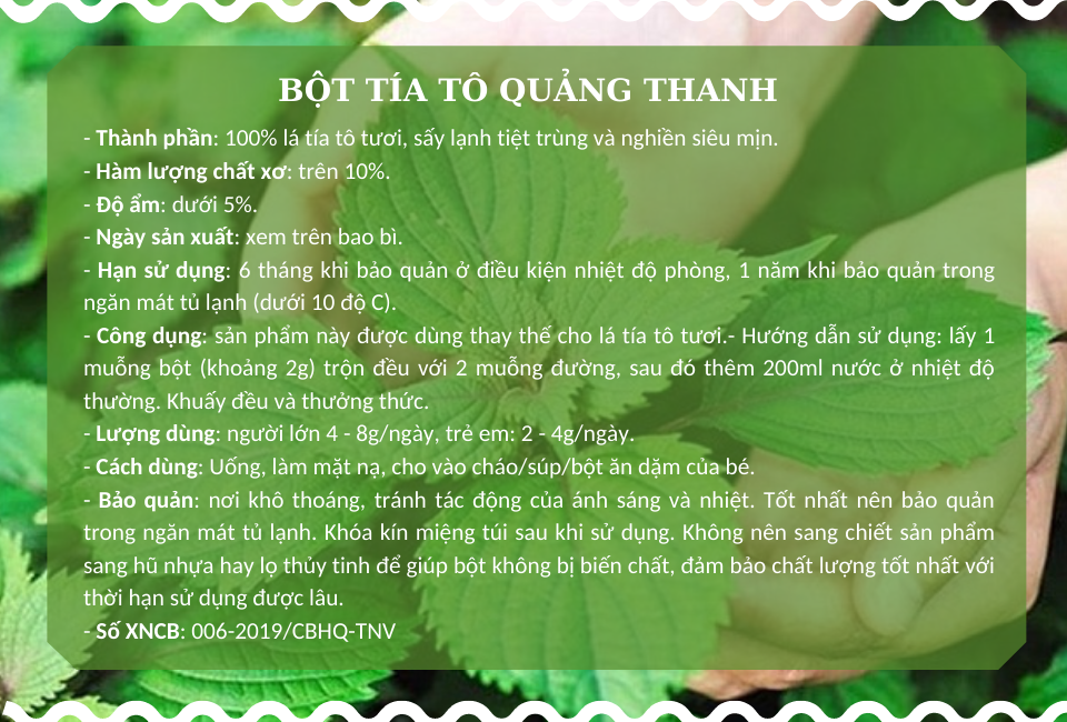 Thông tin chi tiết Bột Tía Tô Quảng Thanh